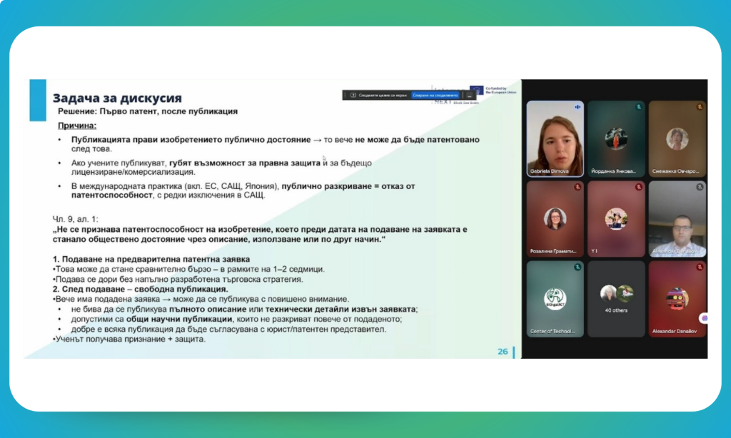 The trainings, which were held separately in Türkiye, Greece, Bulgaria, and Romania—four in total—were based on eight training modules developed under the project. A total of 167 participants, including TTO staff, researchers, students, industry representatives, and entrepreneurs, attended the sessions in full.